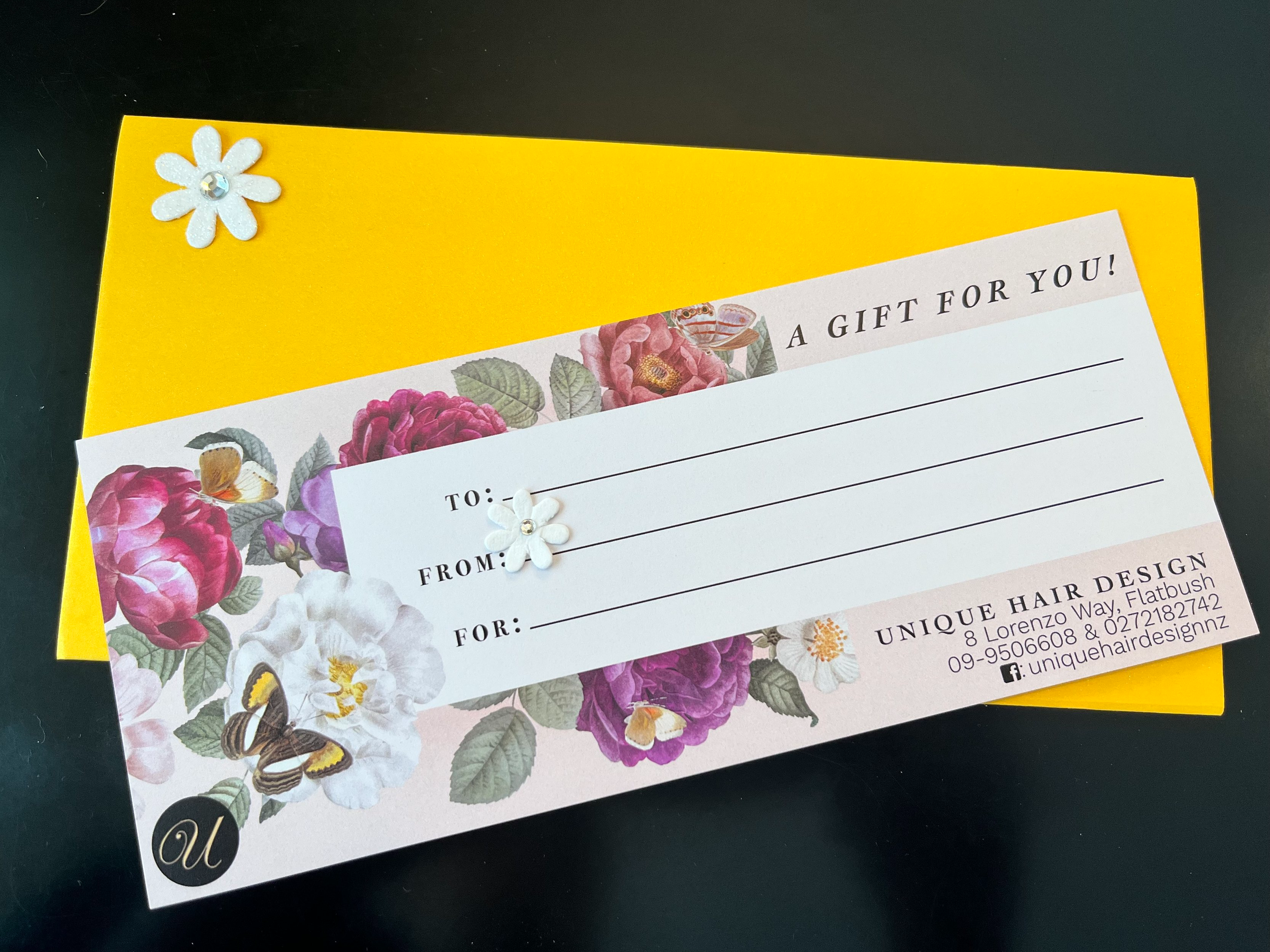 Are you stuck for a gift idea, or do you know someone who deserves to be pampered? A Unique Hair Design gift voucher is the ideal gift. Gift vouchers are redeemable for any products or towards a new hairstyle/colour.